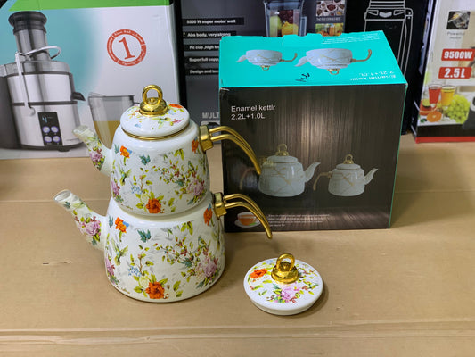 Enamel Coating Tea Kettle 2 Pieces Stainless Steel handles